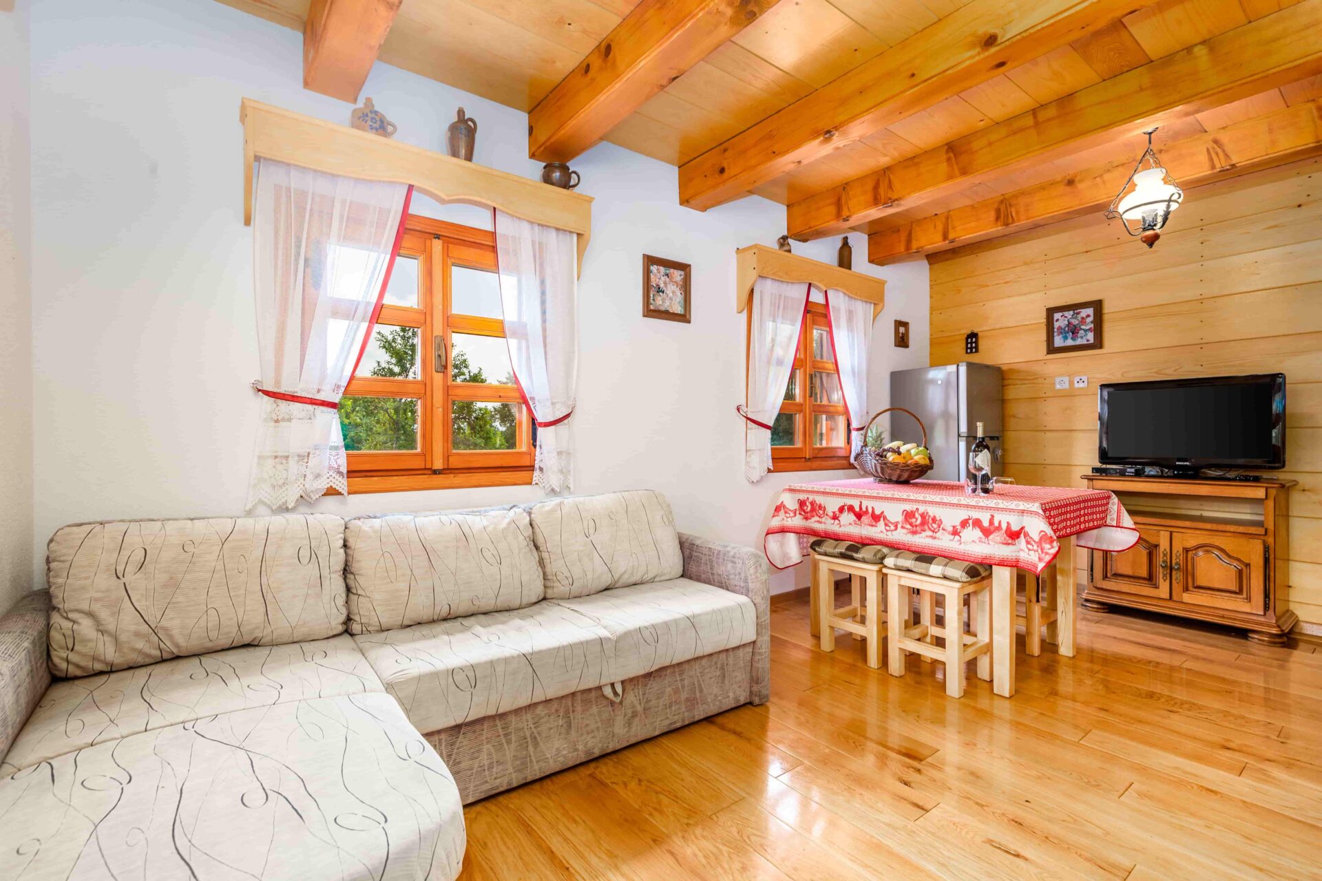 Za nas najsimpatičnija i kako joj volimo tepati “mala kuća” iako i nije tako mala jer sastoji se od konobe u prizemlju, a na katu su dnevni boravak s kuhinjom i blagavaonicom, dvije sobe i kupaonica. Kuća ima ganak (balkon) s kojega se pruža prekrasan pogled na selo i krajolik. Grijanje je putem etažne peći na drva.