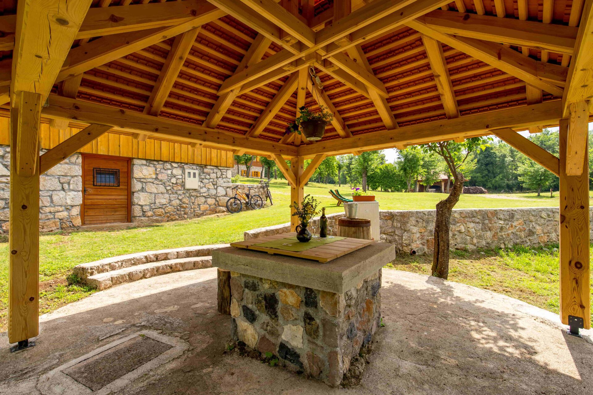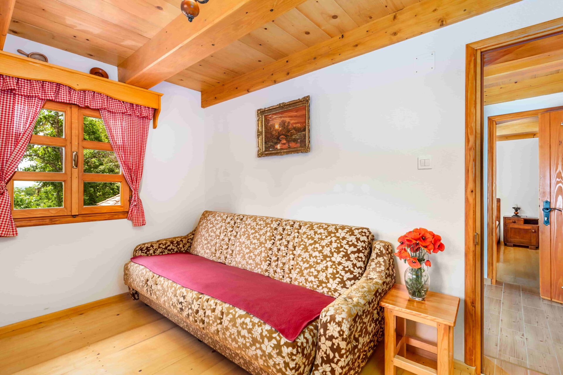 Najmanja kuća u selu, ali s najviše šarma sastoji se od kuhinje, dnevnog boravka sa zasebnim toaletom, spavaće sobe i kupaonice. Kuća je namještena u starinskom, rustikalnom stilu s restauriranim namještajem što joj daje poseban šarm i povratak u vrijeme kako su živjeli naši stari. Uz kuću se nalazi pripadajuća nadstrešnica za odmor s bunarom i pogledom na netaknutu prirodu.